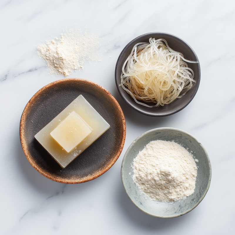 Trzy japońskie zagęszczacze — agar-agar, konnyaku i kuzu — tworzą system tekstur, który nie ma odpowiednika w kuchni europejskiej. Każdy z nich rozwiązuje inny problem: agar-agar — stabilny żel, konnyaku — sprężysta masa, kuzu — przezroczysta glazura.